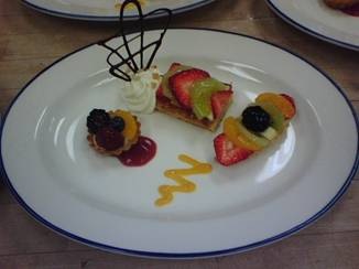 My favorite classes in culinary arts were nutrition and sensory analysis where you learn mainly the techniques of poaching and steaming. It focuses on how to create natural fresh flavorings through food combinations. Beverage class was a lot of fun too. Every student’s “desk” was a bar set-up. The bottles were filled with colored water. Our practical was to make 12 mixed drinks in 6 minutes. I also really liked the baking classes.