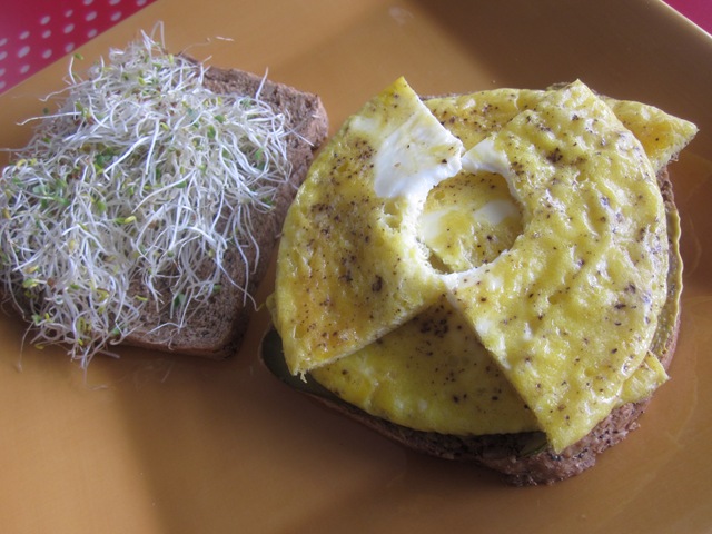 Haha in that first pic of your egg sandwich, I thought the eggs were pineapples because of the circles missing from them. A pineapple sandwich DOES sound interesting, though 😉 But probably not as good as a banana/nut butter/raisin sandwich. Yum.