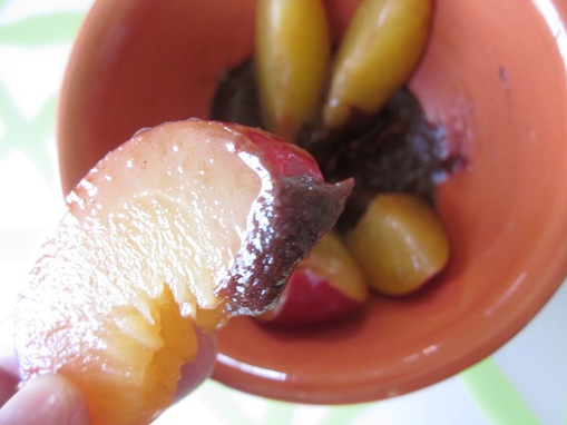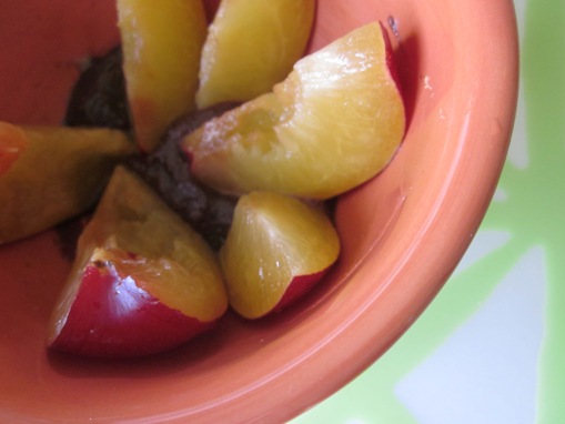 - I discovered plums and chocolate hazel nut butter are an amazing combo.