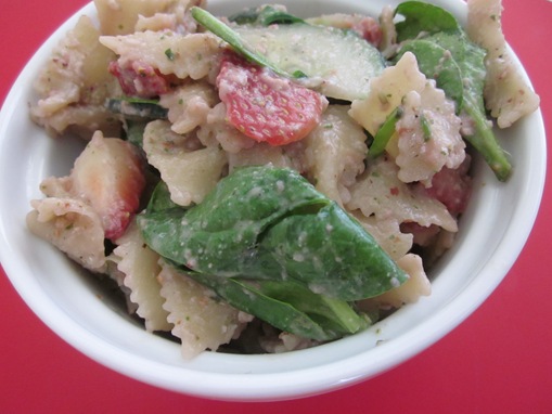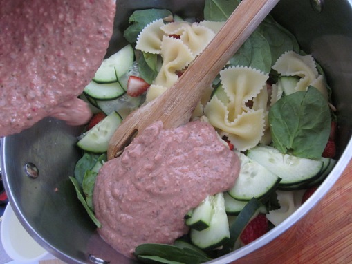 When I poured the pesto onto the noodles it seriously smelled like some kind of berry pastry!