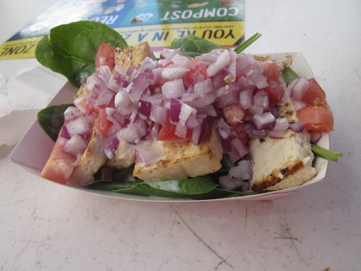 Full of red onions, bland tofu and a watery yogurt sauce.  Bleh!  It’s dishes like these that make people think tofu is gross.
