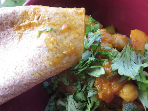 I didn’t actually know what I was doing, I just cooked some onions then added some curry, paprika, soy sauce, water, butternut squash cubes, zucchini moons and when those were done, I tossed in some chickpeas.