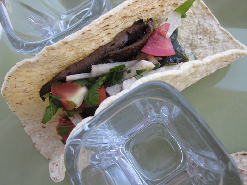 IMG_3017 Grilled portobello and poblano tacos with pico de gallo.