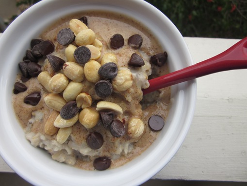 Adding chocolate milk to oatmeal might be the best idea since sliced bread OIAJ.  And you should never repeat that sentence outside of the blog world — people will think you’re crazy.