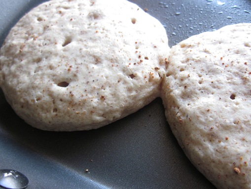 3. Heat a skillet and drop batter to make 4 pancakes.