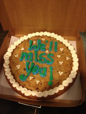 There was a giant cookie cake, lots of hugs and people telling me “congratulations!”