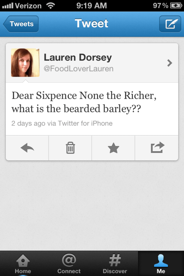 HAHAHAHA What IS bearded barley? It sounds like hairy grains, which is kind of gross.