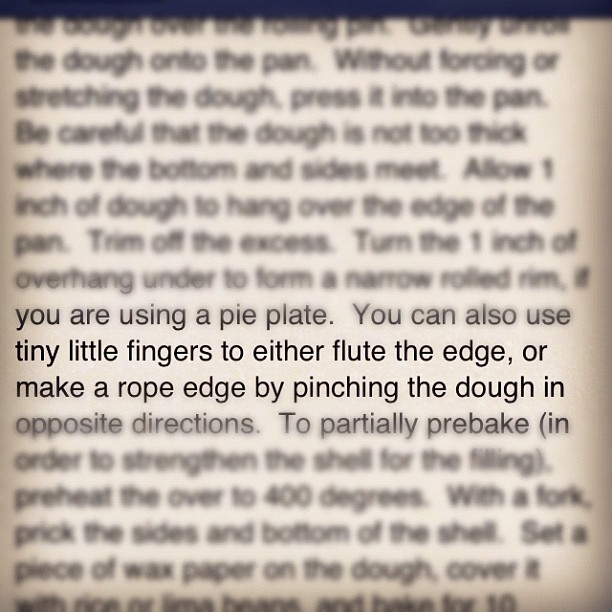 The recipe for this crust comes from a cookbook my mom has had for years. You can tell how loved it is just by looking at it, and as with any well-loved cookbook, you can clearly see which recipes are the favorites because it just seems to open to those pages. And it’s called “The Perfect Pastry Shell,” so really, how could this not be a favorite? I distinctly remember sneaking hunks of the dough out of the fridge to snack on when I was younger.