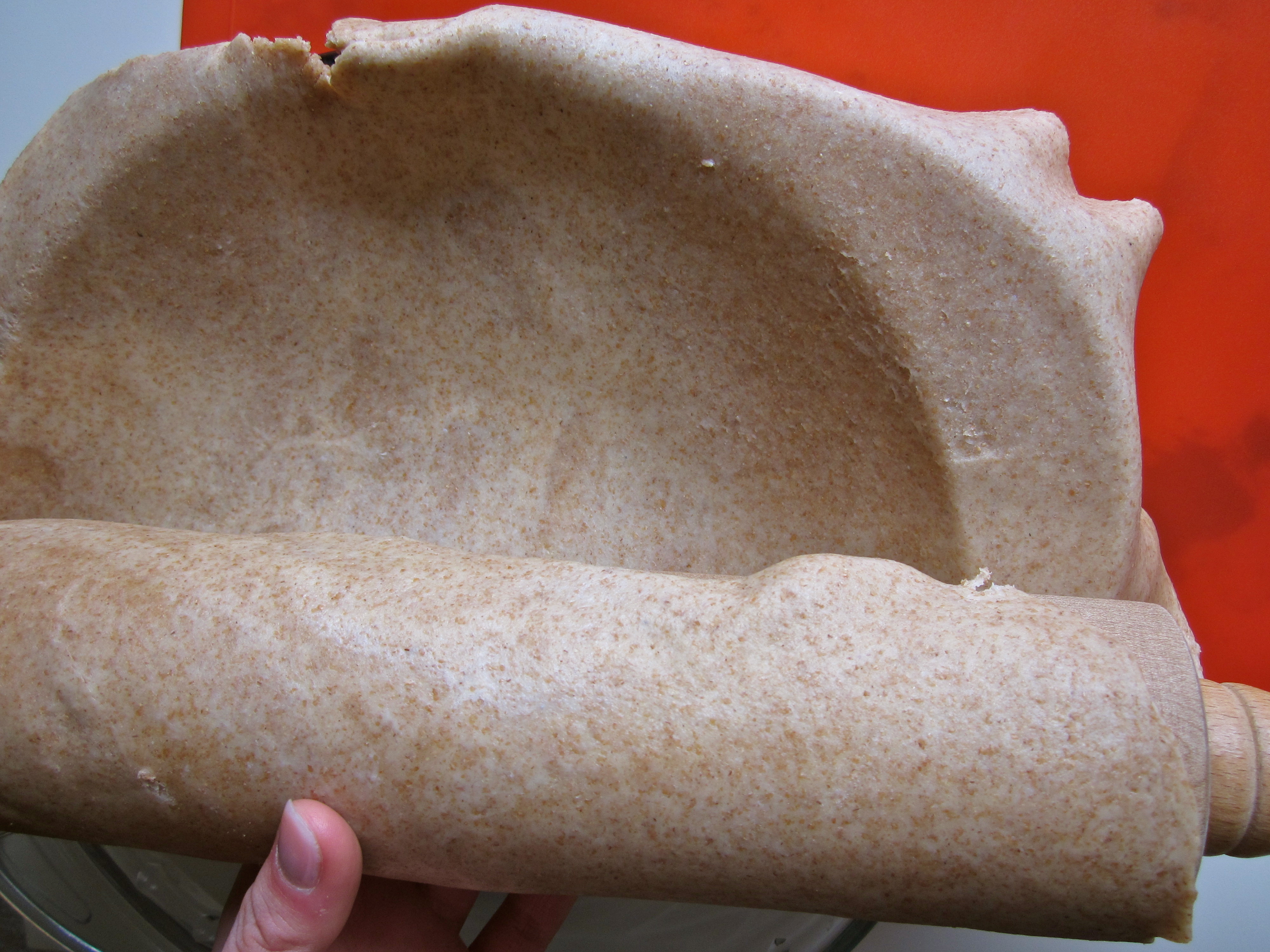 - Roll out on a heavily floured surface, roll over the rolling pin and unroll in a pie dish.