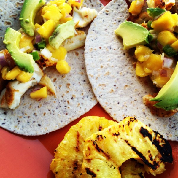 These tilapia tacos from Cooking Light were so so good.  Really.  And tis the season for grilled pineapple!
