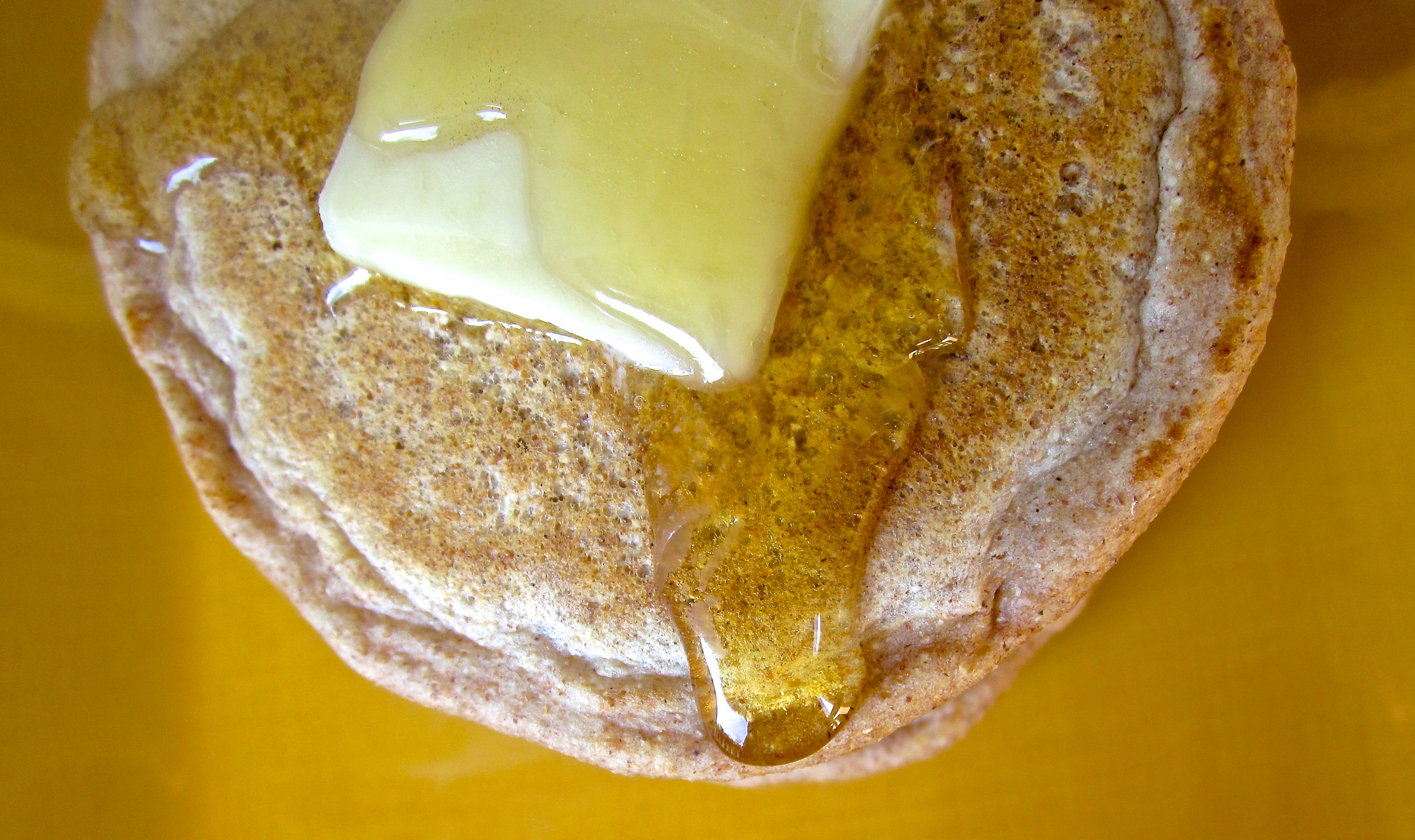 On Sunday morning, I was kind of being a crab. Here’s how crabby I was being. Joey reminded me it was Pancake Sunday and my reaction was basically this. “Ughhhh, I don’t want toooo.” Who says that about pancakes?! But Robert Irvine was showing me how to make hasselback potatoes and the couch was really comfy. Then I remembered I had Honey Noosa in the fridge and Pancake Sunday was on.